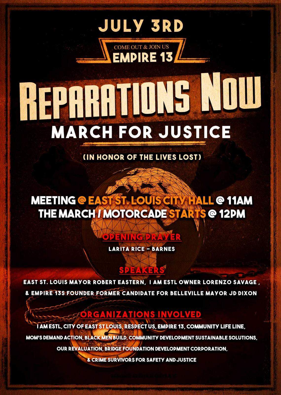 Empire 13, an activist organization in the area, will host a march to bring awareness to the lives lost during the 1917 race massacre in East St. Louis.