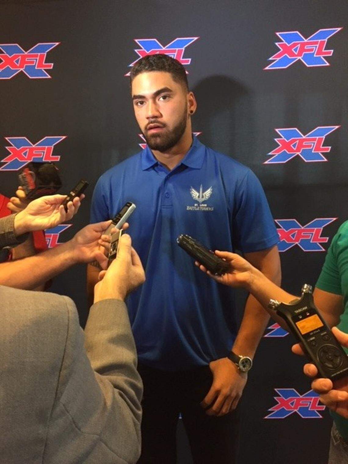 BattleHawks coach Jonathan Hayes introduced Ta’amu to the media.